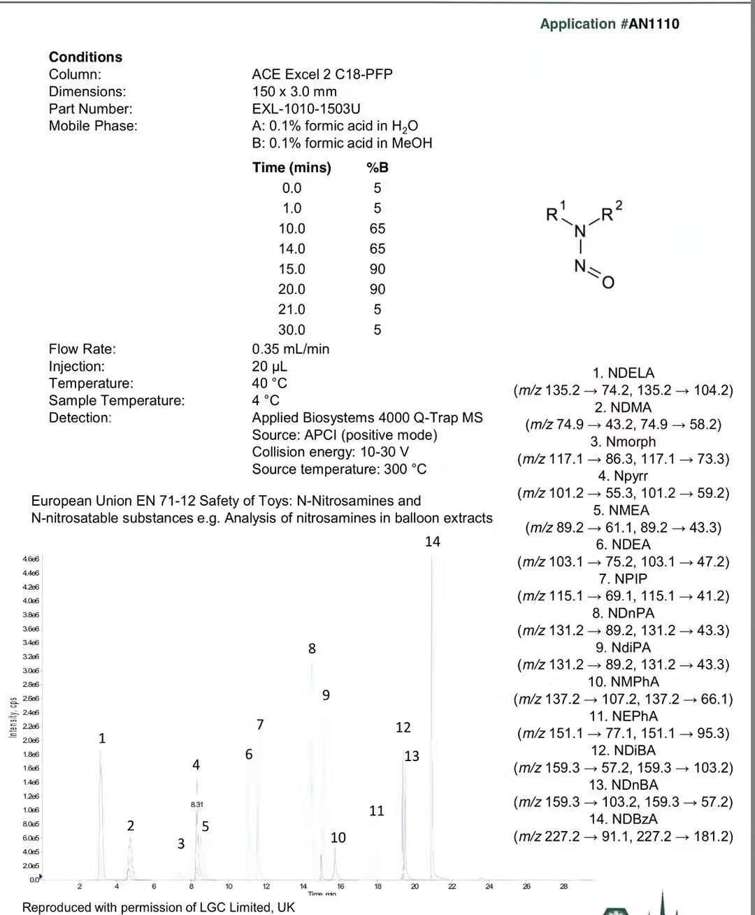 2、亞硝胺類檢測(cè)方法(ACE官方)