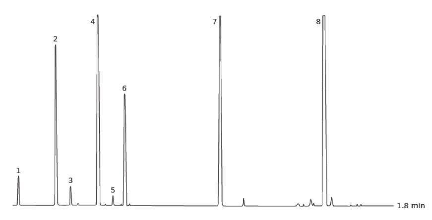 升溫程序:50℃ (0.1min), 40℃ /min, 250℃ 樣品:用環(huán)己烷稀釋濃度為 1%
