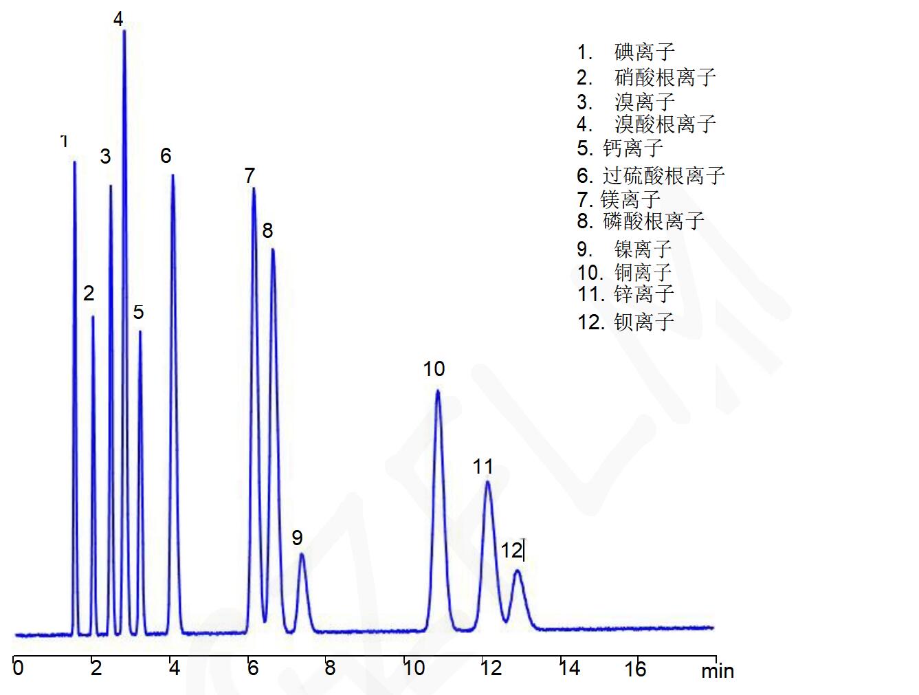 說明:若用此法測定鈣離子時,樣品中需避免存在氯離子,在Comixsil HAC固定相色譜柱中,鈣離子與氯離子將共洗脫。 如果是氯離子存在時的鈣離子的分析,可以采用Comixsil ACRP或Comixsil RP-100等其它固定相色譜柱進(jìn)行分析。