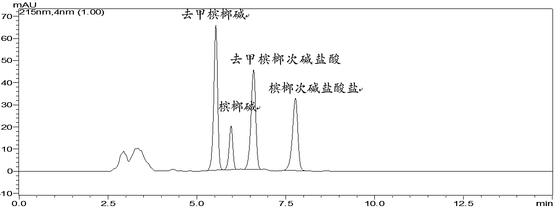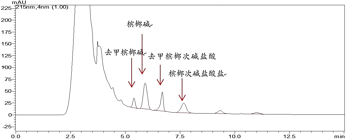 注:此方法在藥典方法基礎上做了適當調整,能有效分析檳榔中四種有效成分。如只測定檳榔堿,可按藥典原方法進行分析。
